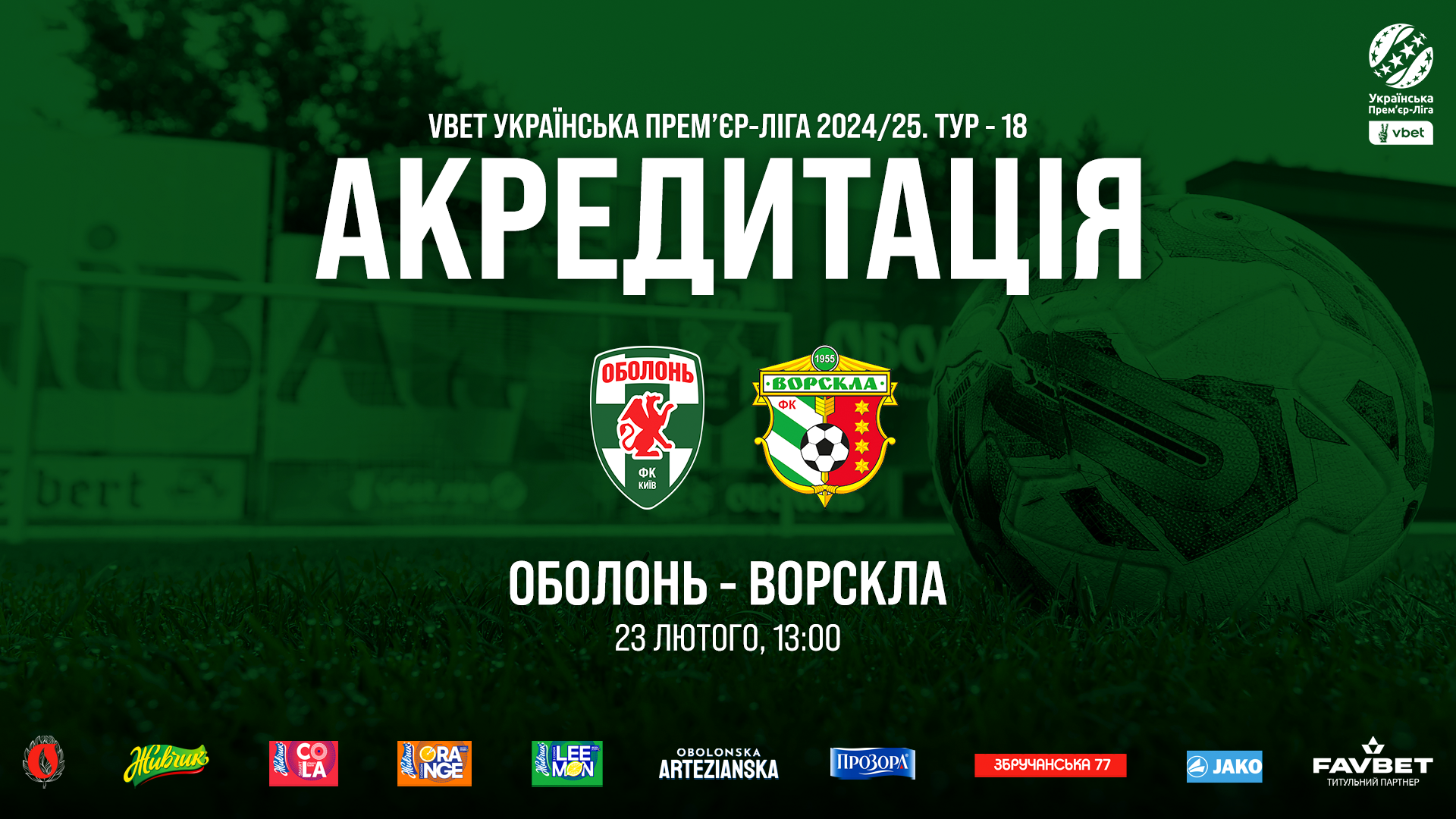 ФК Оболонь Київ відкриває акредитацію для медіа на матч із Ворсклою!