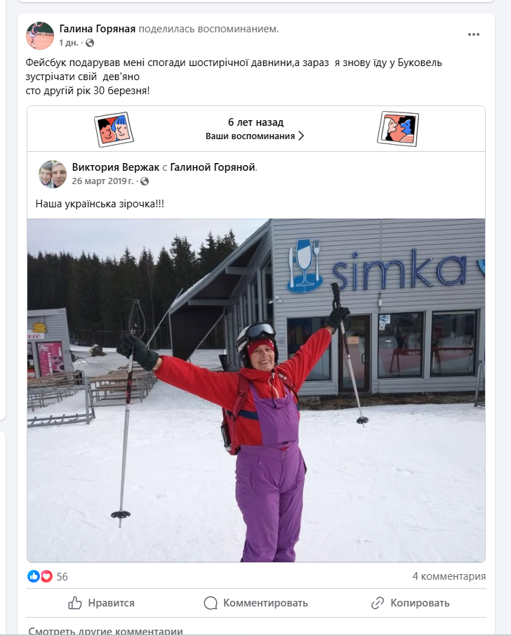 «Facebook подарував мені спогади шестирічної давнини, а зараз я знову їду в Буковель зустрічати свій дев’яносто другий рік — 30 березня!»