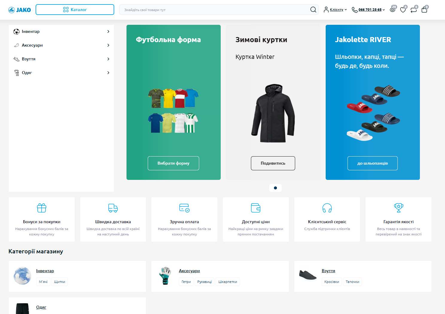 Асортимент спортивного сайту Jako-Sale вражає різноманітністю: